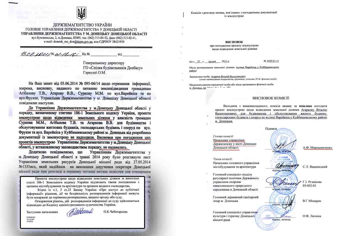 Уголовка тут рисуется прямо «по сговору группы лиц». Но возникла преграда на пути отведения прибрежной зоны фекального «ручья», который течет вспять (т е в гору), а потом незаметно для людей как-то в ставок впадает – это уже утвержденные всеми проекты землеотводов трех физлиц на этом же участке (Агибалов, Сурков, Агарков). Собственно из-за них, клятых, тетя Таня Бахтеева всю эту катавасию и закрутила, потому что на святое посягнули, мерзавцы – на землю рядом, которую она считала своей априори. Ну что делать с этими людьми Бахтеевой? Лезут и лезут. Говорят: у нас все по закону, какое имеете право отказать? И тут начали искать смелого, кто Бахтеевой поможет. Горсовет – пас. Кроме секретаря Богачева (ему уже все равно после прямой поддержки террористов). Кто тогда? Смелым оказался Держкомзем Донецка. А вот теперь наглядно поясню, как работает схема рейдерства.