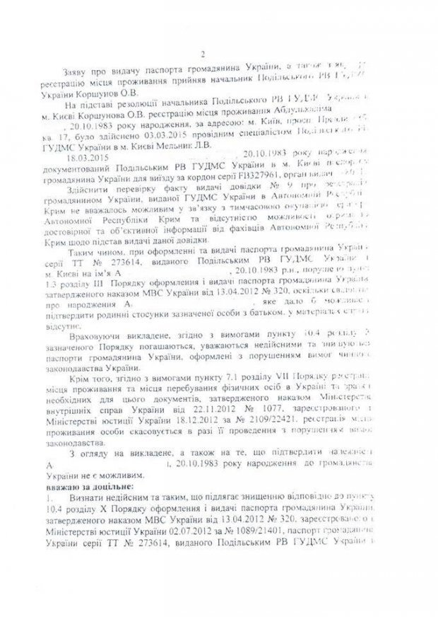 Біляк сприяла за винагороду легалізації в Україні громадянина Росії, який перебуває у всеросійському розшуку. Згаданий громадянин РФ займався екстремістською діяльністю на території України в інтересах сепаратистів,