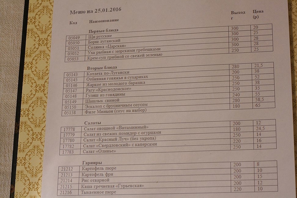 Пока народ голодает: в сети показали меню из столовой "Совмина ЛНР"