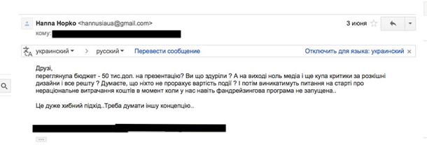 Как видите, Ганна пишет «думаете, никто не посчитает стоимость события?!» Не посчитали.