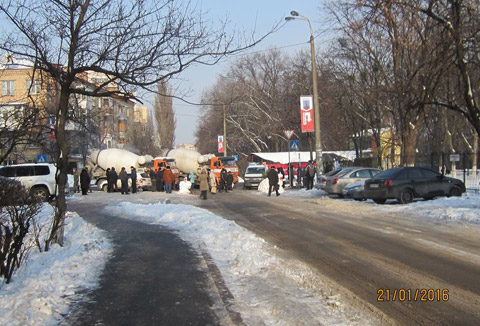 Наприкінці січня СБУ просила забудовника багатоповерхового будинку по вулиці Потєхіна, 9 в Голосіївському районі Києві призупинити роботи через соціальну напругу.