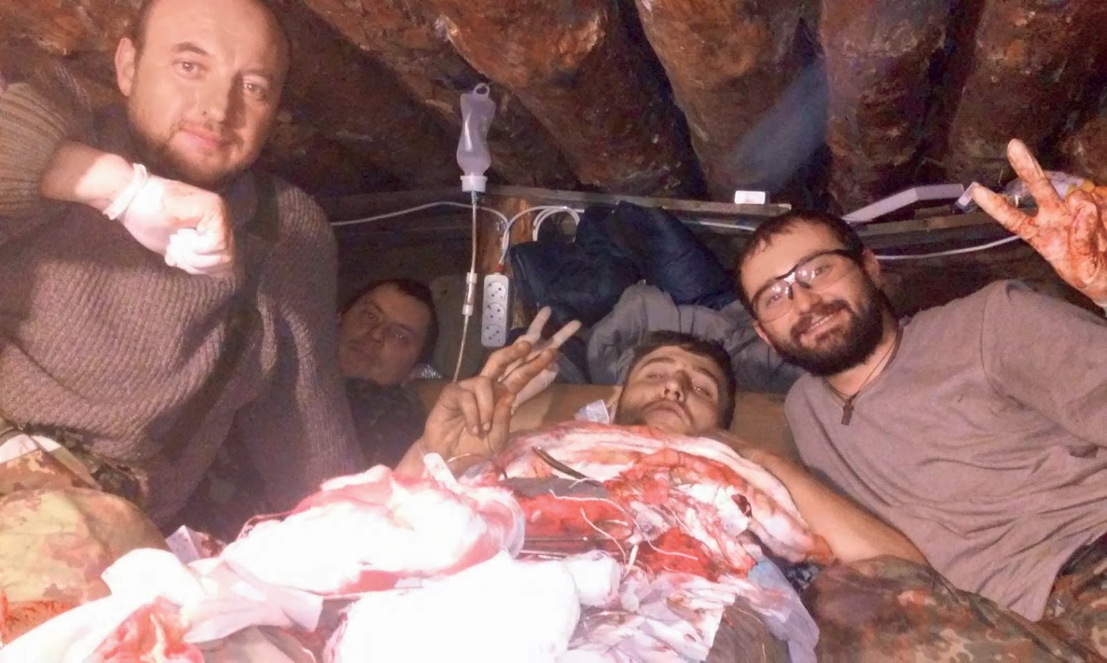 Следующий раненый — Саша Тарасюк (Чебурашка). Во время ревизии раневого канала, к сожалению, убеждаюсь, что осколок все же прошел ребро и вошел в брюшную полость. После осмотра говорю ему: «Друг, у тебя ранение живота и внутреннее кровотечение, ты умираешь. Вывезти в больницу тебя не можем, потому что мы в окружении. Единственный шанс для тебя — операция здесь, в нашем окопе. Анестезиологи готовы сделать наркоз, я готов оперировать. Твое решение?» Саша сказал: «Делайте все, что нужно, чтобы только ничего не болело!» Уже через мгновение анестезиологи начали вводить нашего воина в наркоз.