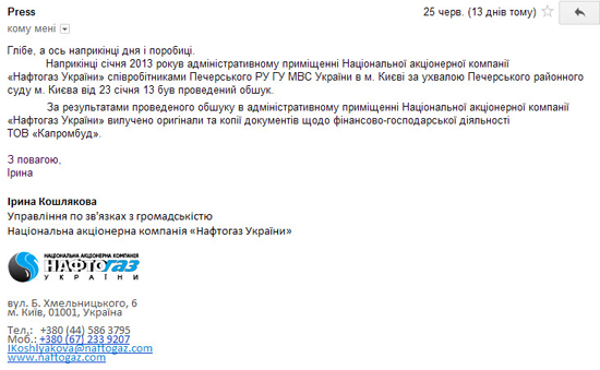 У прес-службі "Нафтогазу" повідомили, що тендери "Капромбуду" вже давно у полі зору правоохоронних органів, і від розгорнутих коментарів відмовилися. Лише додали, що у січні 2013 року в адміністративному приміщенні НАК співробітники Печерського відділення міліції провели обшук.