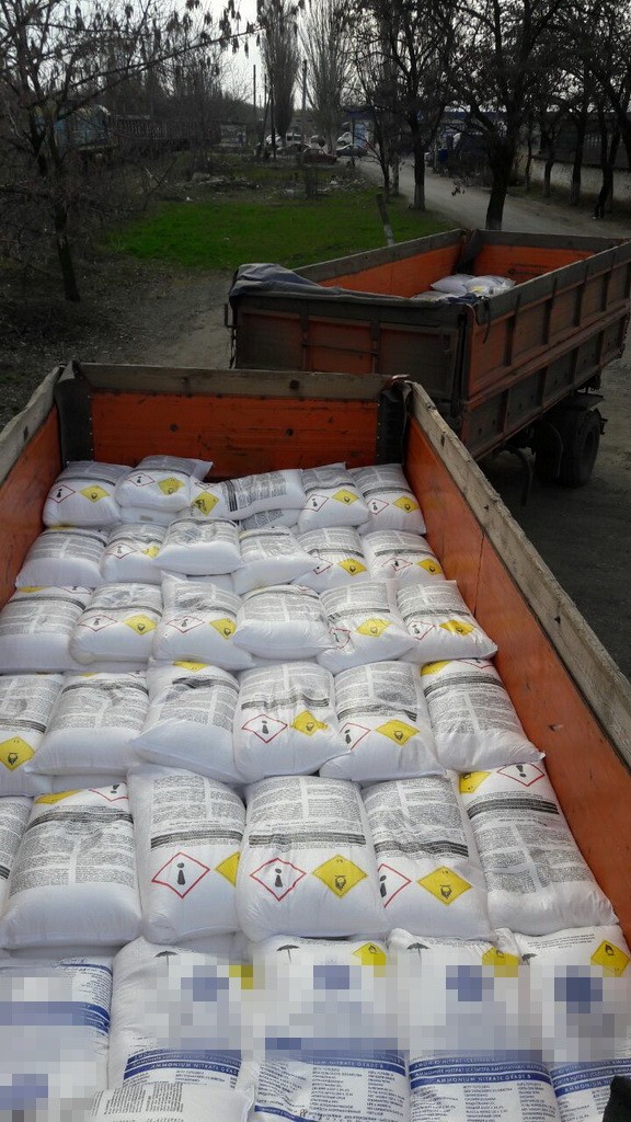 Согласно сообщению ведомства, первый груз был задержан вблизи населенного пункта Очеретино Ясиноватского района. Правоохранители остановили грузовик с прицепом, в котором обнаружили 20 тонн селитры. Водители пытались ввезти продукцию на временно оккупированную территорию. Документов на товар у них не было.