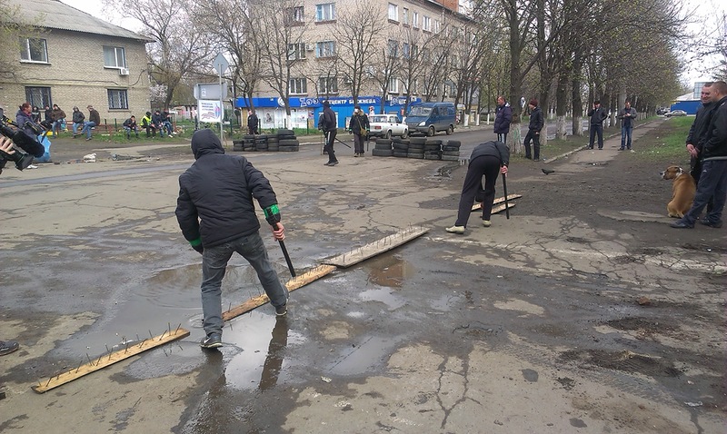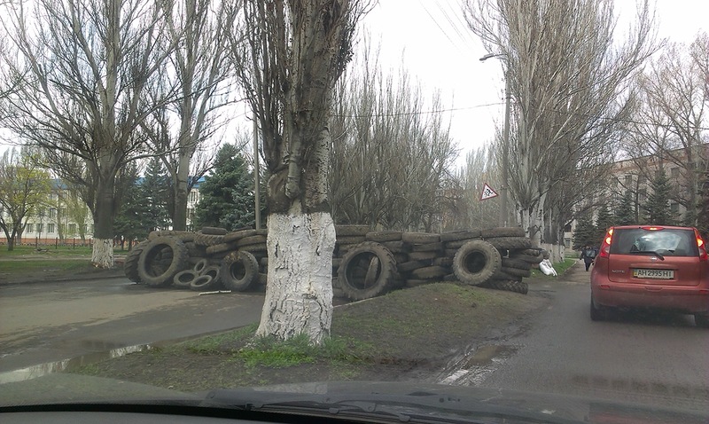 Славянск не контролируется украинскими властями. Город полностью находится во власти захвативших его группировок сепаратистов, и представляет собой эдакое Гуляйполе, со всех сторон обнесенное баррикадами из покрышек. Баррикады устроены на въездах в город в несколько рядов. На них стоят уже привычные всем молодые ребята в масках и касках - кто с автоматом, кто с палкой. На некоторых стражниках надеты светоотражающие жилеты сотрудников ГАИ. Они с видимым удовольствием останавливают машины, просят открыть багажник, проводят осмотр. Власть до небес превозносит чувство собственной важности обычного пэтэушника, который еще вчера стыдливо платил 20 гривен за зачет.