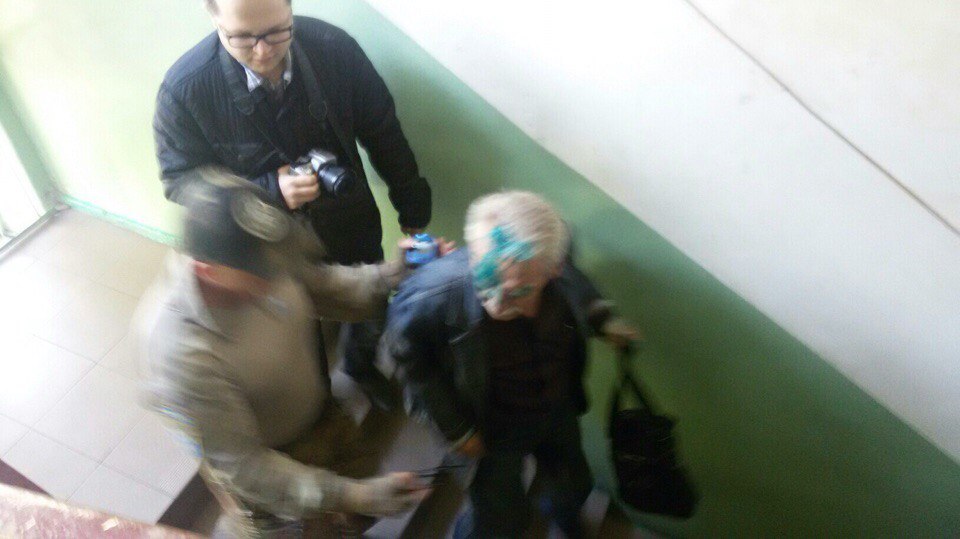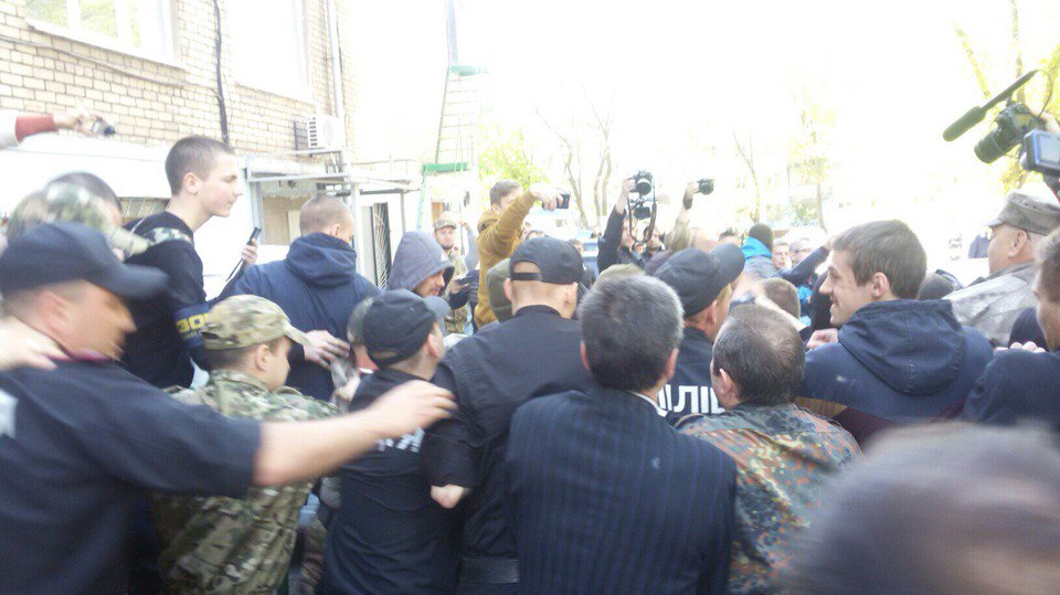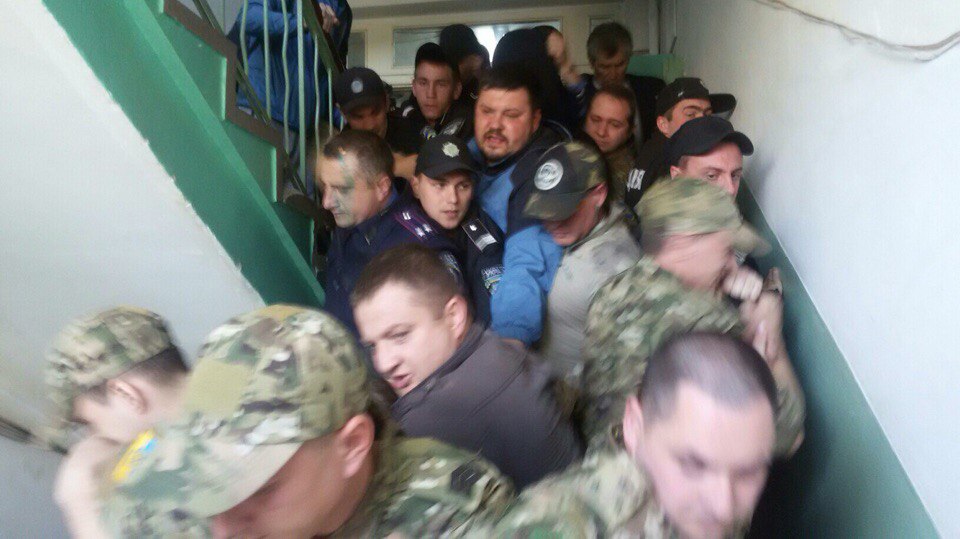 UPD: Из здания выведен и передан в СБУ Василий Волга - организатор митинга «союза левых сил». Несмотря на коридор, Волга получил по заслугам
